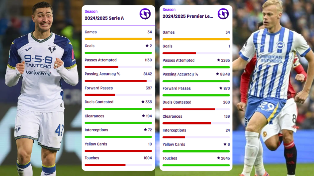 Although Coppola’s metrics suggest he’s not suited for Brighton’s possession-heavy style, his on-the-ball differences could compliment defenders such as Jan Paul van Hecke quite nicely.